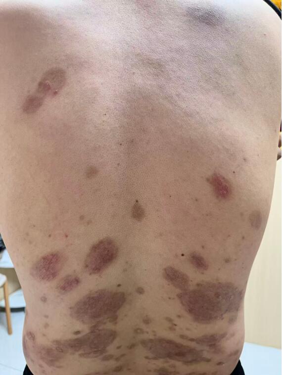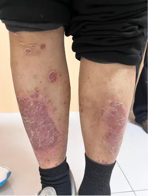 一位多年牛皮癣的患者,由于种种原因造成银屑病病变,发展成双腿及全身都长满了一大块一大块的红斑,瘙痒、疼痛、还伴有肿胀,患者是格外痛苦,在年前的时候了解到世家中医师贾玲主任的治疗方案,抱着试一试的态度通过三个疗程的治疗,如今大面积的红皮斑点消失退化,患者不再瘙痒,腿部也不再肿胀,肉眼可见的良性治疗方案朝着预期的效果好转,经过患者的同意,特别拍摄了治疗前后的效果对比图供牛皮癣患者甄别。